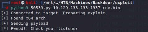 python3 50539.py 10.129.133.133:1337 rev.bin