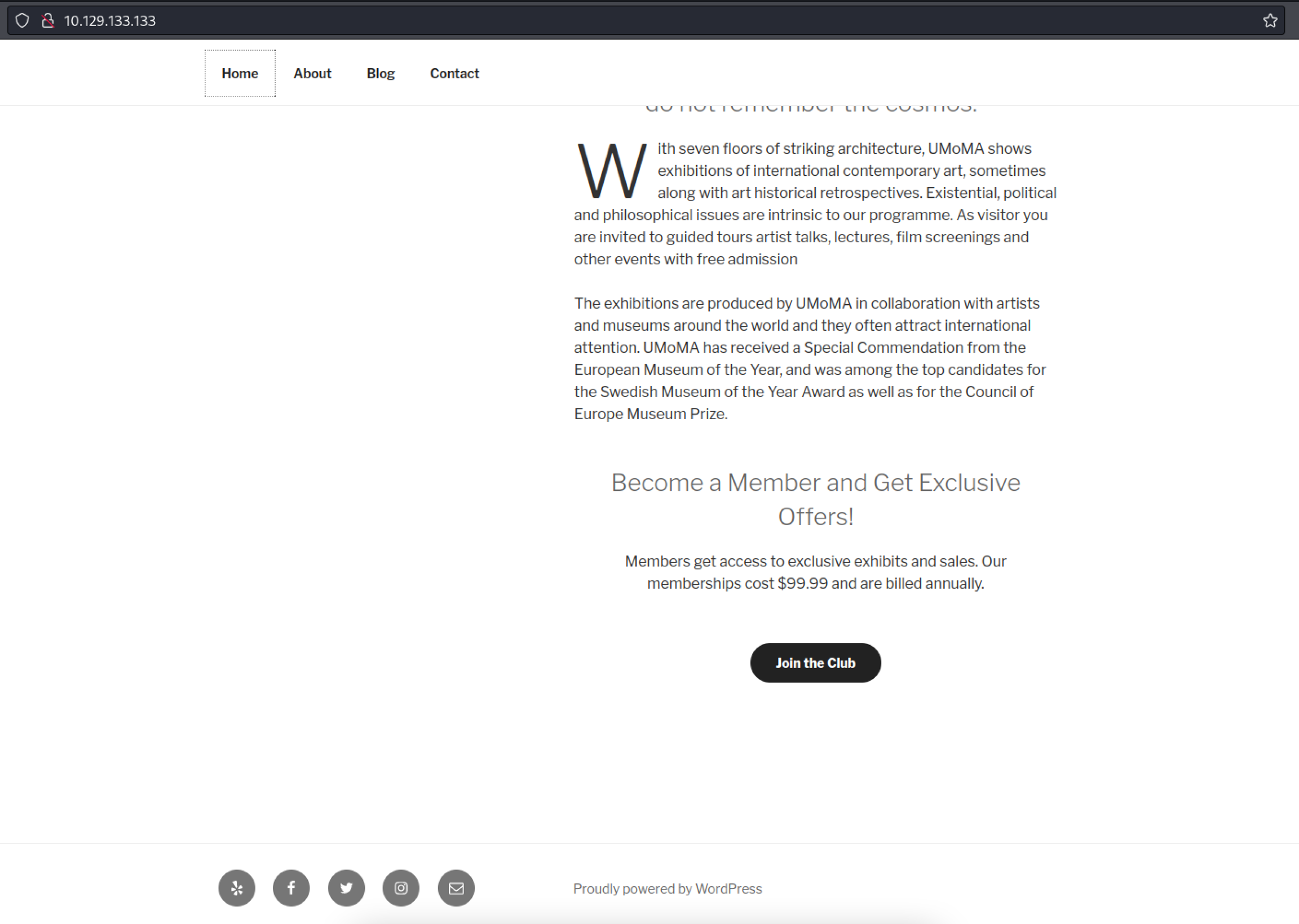 Visiting the site we can see it is running wordpress
